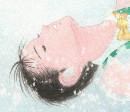 - 舞華 手描き水彩複製画 #086b クリスマス・グリーン フィギュアスケート レオタード Xmas