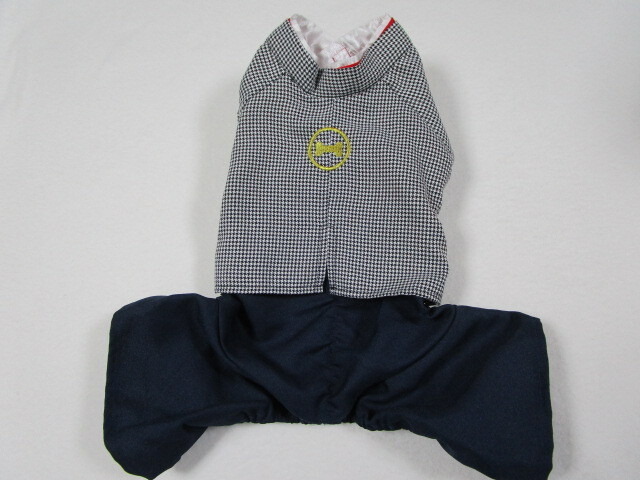 - ペットパラダイス SSサイズ 胴回り44㎝ お正月 羽織・袴 オールインワン 千鳥格子・紺 中古