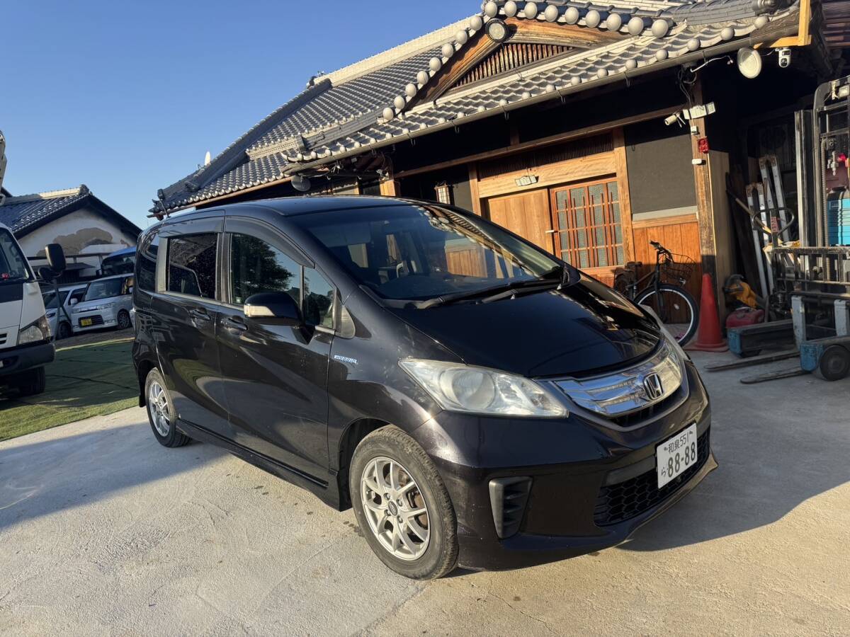 - H 23年 フリード ハイブリッド 車検付 R 8年 8月 絶好調 低燃費 ナビ ETC Bカメラ フリップダウン パワースライドドア アルミ