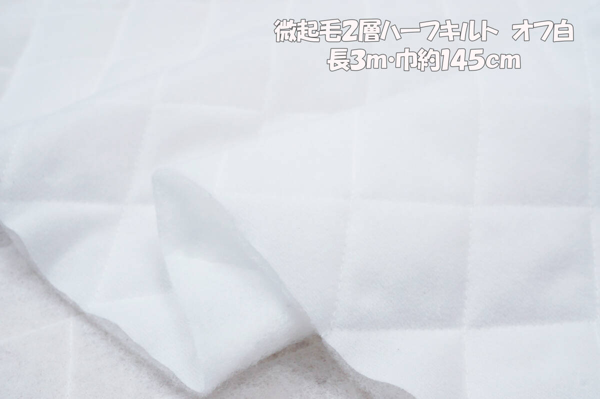 > ⑩微起毛2層ハーフキルト オフ白 微厚ソフト 長3m巾約145㎝ アウター保温裏 コート ジャケット バッグ内袋 マルチカバー ペット用