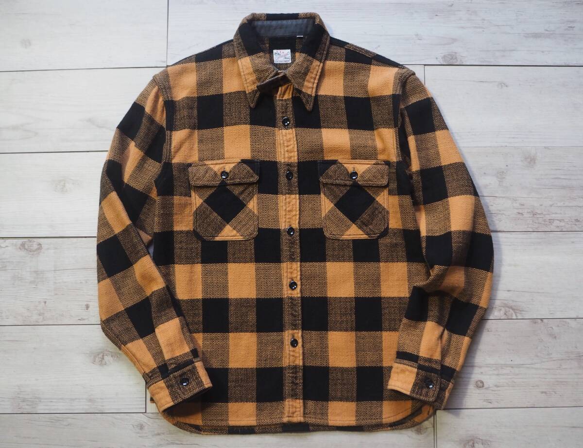 > ザフラットヘッド/THE FLAT FEAD ブロックチェック xヘリンボーン フランネルシャツ 40