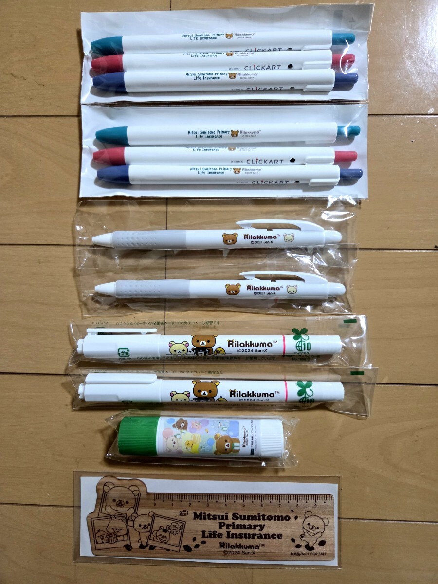 > 非売品!リラックマ ボールペン+クリッカート+蛍光ペン付ボールペン+のり+定規セット、三井プライマリー