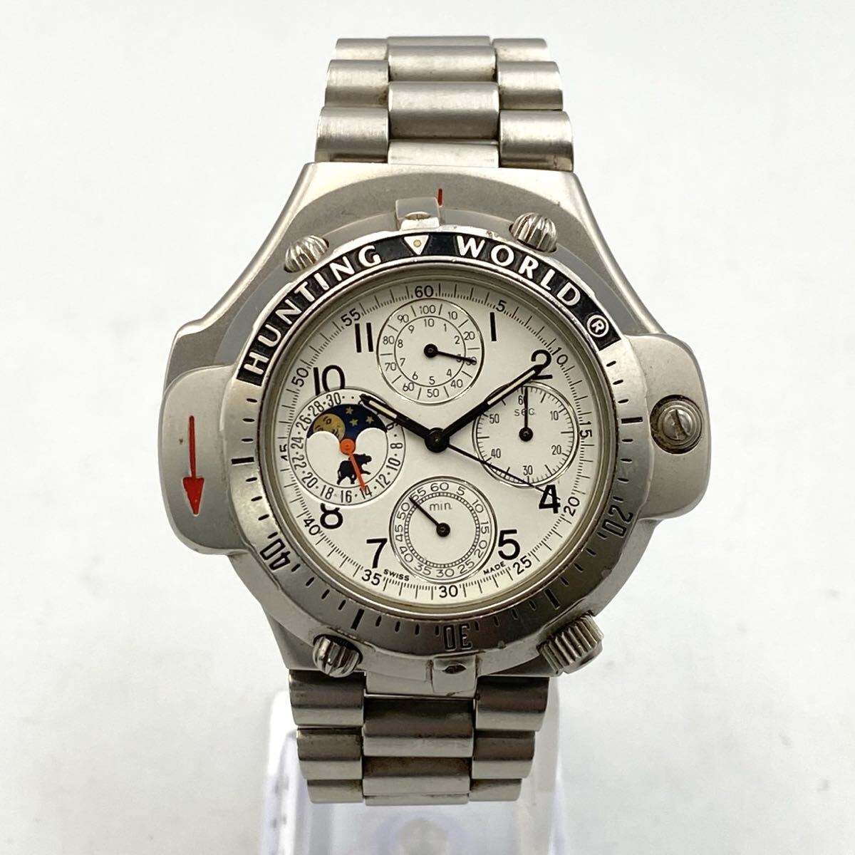 > A HUNTING WORLD クロノグラフ 腕時計 ムーン フェイズ スポーツアバウト ホワイト文字盤 ハンティングワールド モノトク