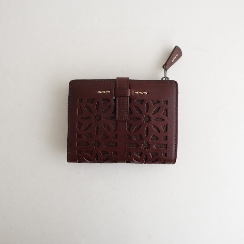> 【未使用/2025/定価2.8万】ゲンテン genten *カットワーク 2つ折り財布*ダークブラウンレザー革(ac30-2512-140)【91A62】