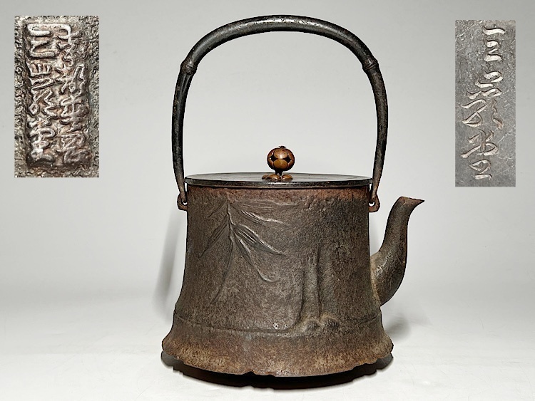 - 【瑞】三厳堂造 竹紋 銅蓋 鉄瓶 高:26cm