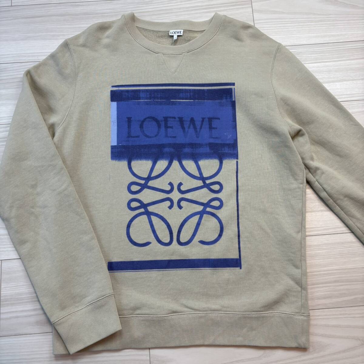 - 23『極美品・現行タグ』 LOEWE ロエベ メンズ フォトプリント ビッグロゴ アナグラム スウェット トレーナー カーキ Lサイズ