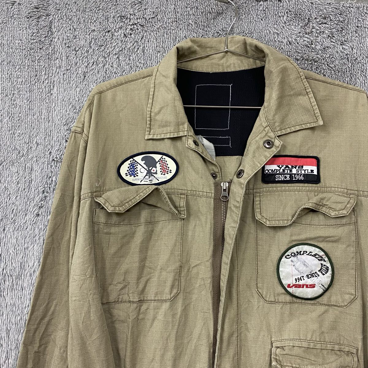 - 【Cイ】☆ VANS バンズ オーバーオール ツナギ 作業着 サイズL相当 ベージュ ワッペン コットン リップストップ メンズ トップス 最落なし
