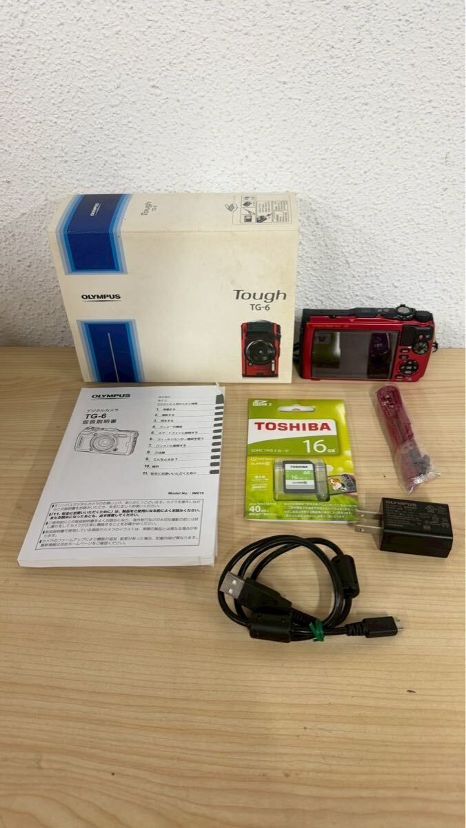 - 1円〜【通電確認済み】OLYMPUS Tough タフ TG-6 レッド 付属品 未使用SDカード 箱付 コンパクトデジタルカメラ デジカメ オリンパス