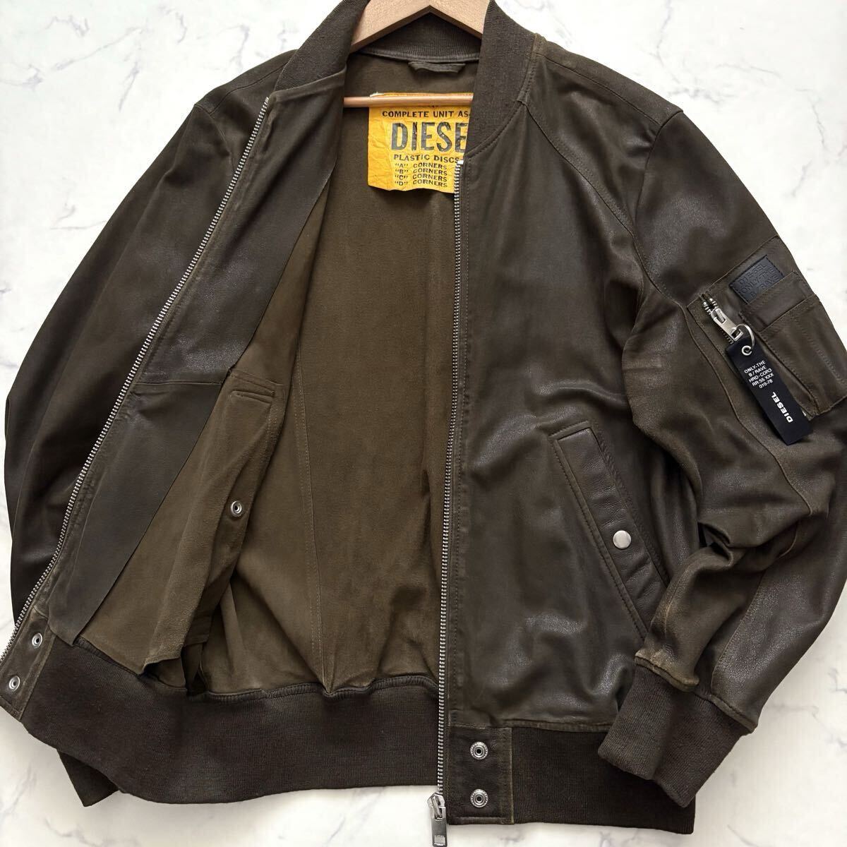- 極美品 ディーゼル MA-1 レザージャケット L相当 ゴートスキン 羊革 本革 カーキ フライト ボンバージャケット ブルゾン DIESEL メンズ