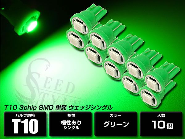 - T10/T16 ウェッジ 超高輝度3chipSMDバルブ グリーン 10個セット