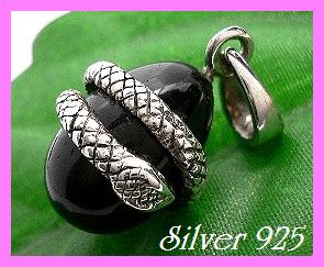 - シルバー925銀の天然石オニキス スネイク コイル ペンダント/ALL50%OFF