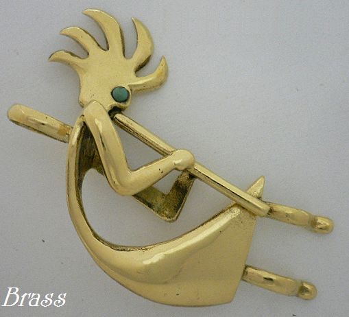 - 真鍮製Brassターコイズ付ココペリ ブラス ペンダントLサイズ/チャームとしても◎