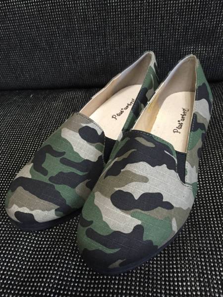 - 新品★迷彩カーキ系カジュアルシューズ スリッポン★23cm