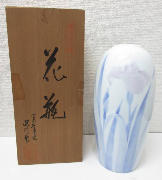 > 未使用品・希少品■有田焼 宮内庁御用達 深川製磁 香蘭花瓶 花器 花入 花生 官窯 染付 箱入り 管理1703 棚1