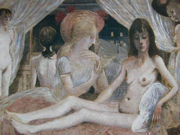 - ポール・デルボー、ポーズするダニエルを眺める若い娘たち、希少な画集より、新品額装付、状態良好、mai
