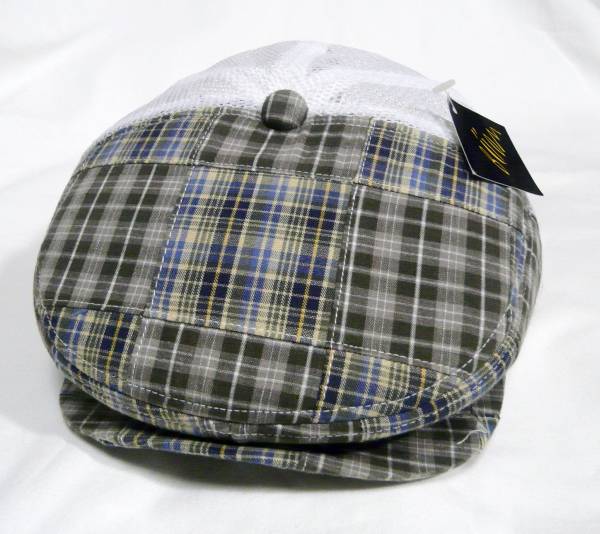 - ハーフメッシュのハンチング帽/マドラスチェックパッチワーク白