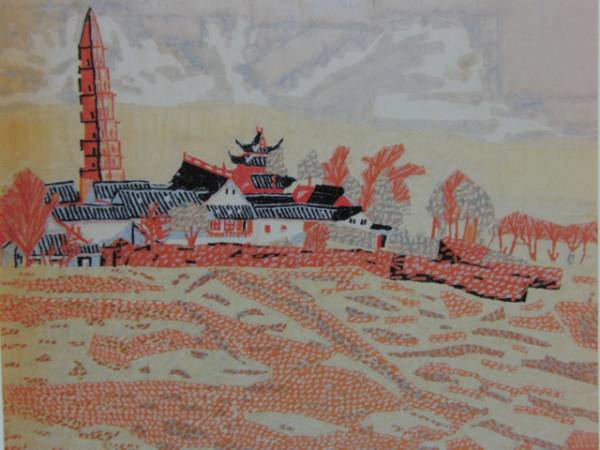 - 山下 清、田舎の風景2、希少高級画集画、新品額装付、salt