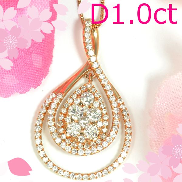 - 【早い者勝ち卸特価】【新品即決】K18PGダイヤモンド1.00ctペンダント/K18PGネックレス45cmフリーアジャスター付き ピンクゴールド NDM019
