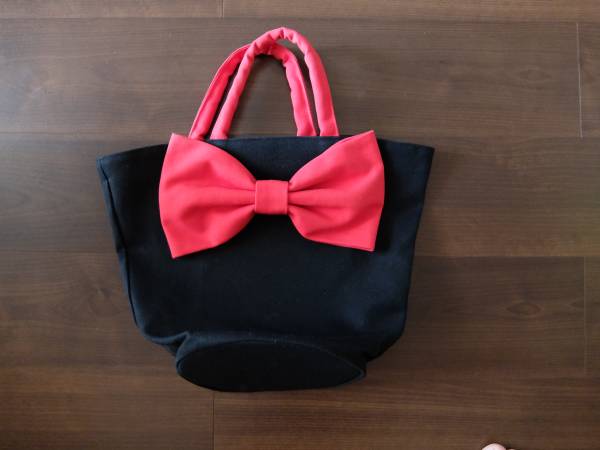 - 赤リボン黒キャンバスハンドバッグ未使用