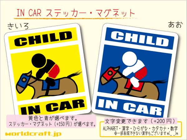 > ■CHILD IN CARステッカー 競馬 ジョッキー!■シール_乗馬 色選択可能 マグネット選択可 車に☆ グッズ かわいい 馬