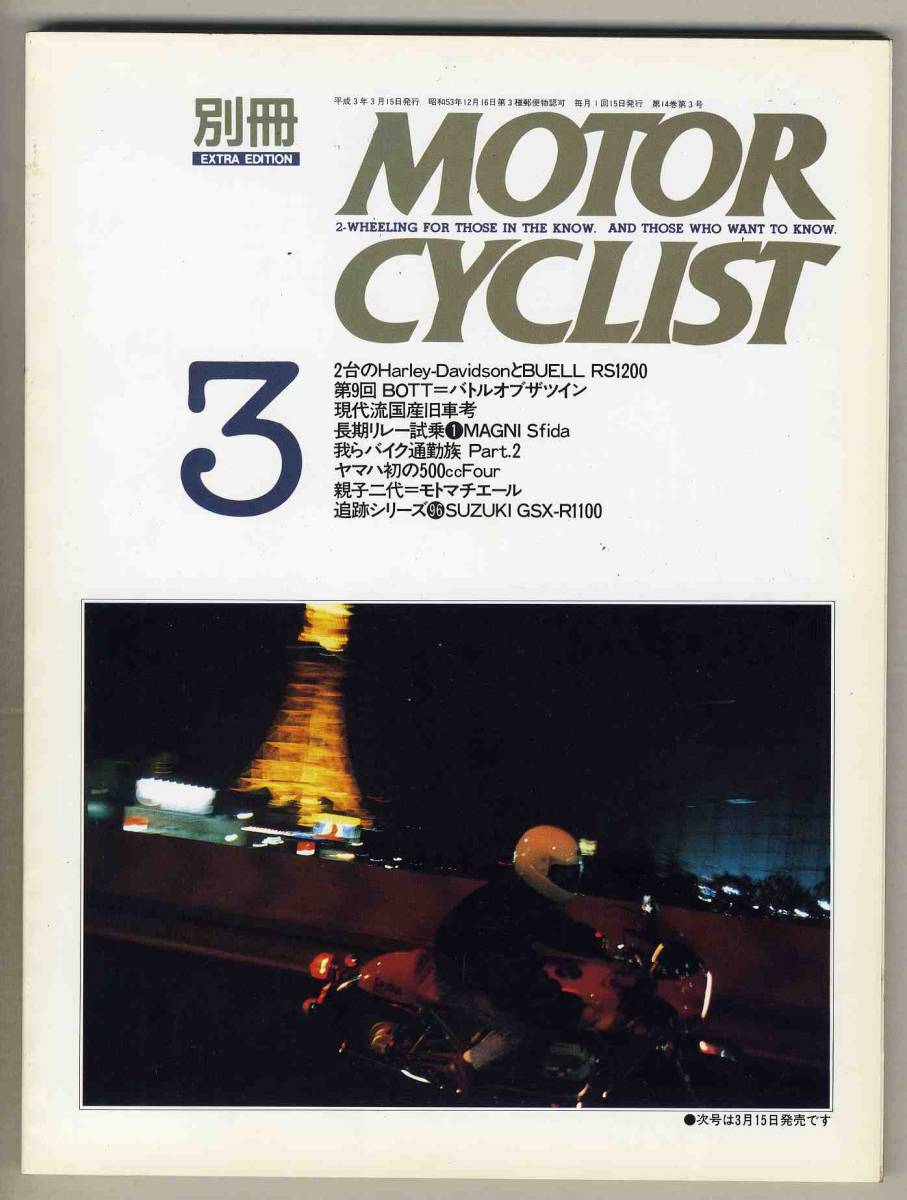 書名/記事: 91.3 別冊モーターサイクリスト/2台のハーレーダビッドソンとビューエルRS1200、ホンダCR110、メグロスタミナK2、マーニ・スフィーダ、オミクロン(サイドカー)、スズキGSX-R1100、…