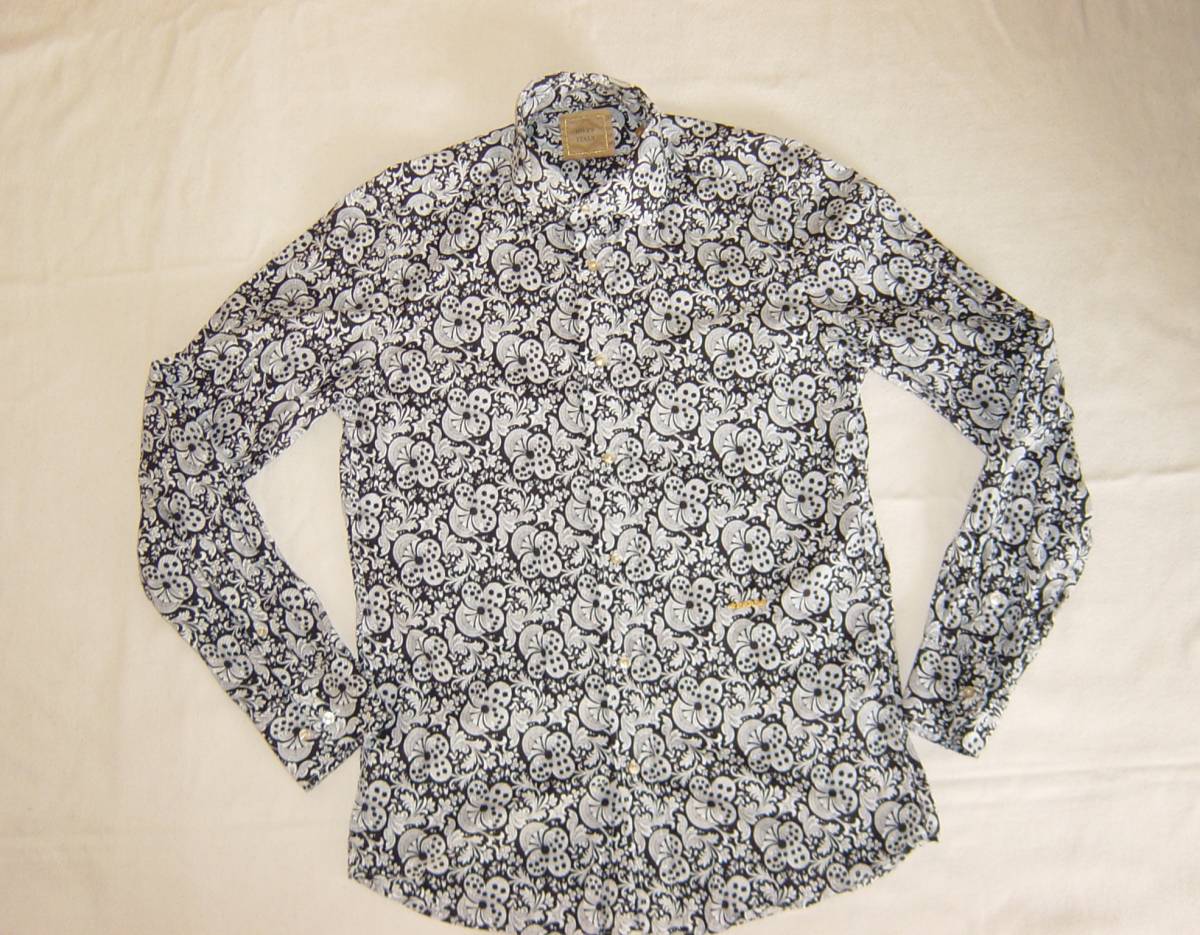 - 0039 ITALY men 長袖シャツ 黒花 S