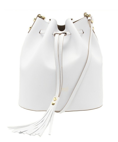 - 新品*NALU*白ホワイト巾着型レザーショルダーバッグ*フリンジバケツ*ビームス購入