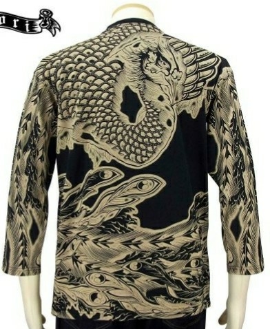 - サトリ/鳳凰/染め抜き/七分丈T/黒/XXL/GPT-001/花旅楽団