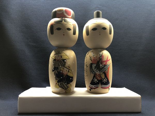 - 極美品■ 松鶴作 こけし 頭部可動式 2体 綺麗です 宮沢賢治の詩 管理1712 G-4