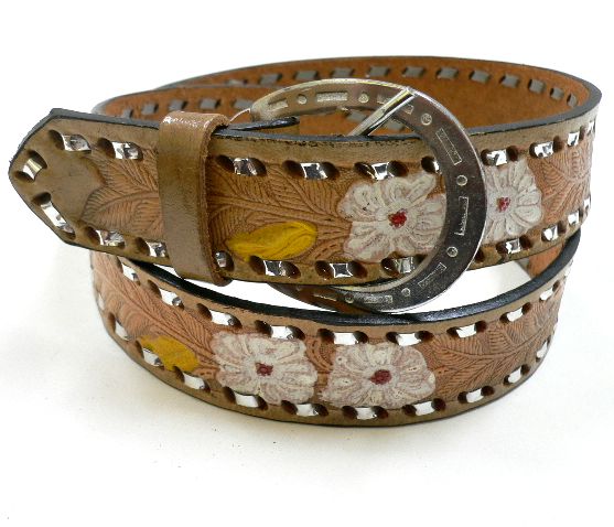 - 牛革カービング花柄リーフ レザーベルト/革製品ALL20%OFF