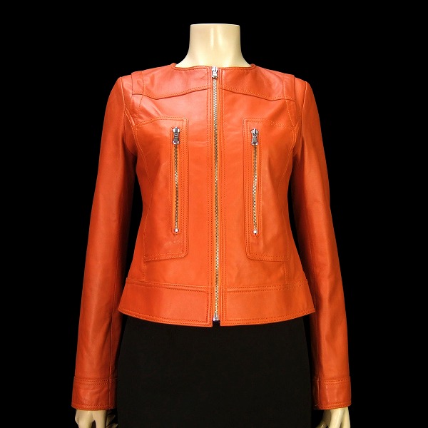 > F 美品★CLASSY Total collection クラッシィ★綺麗クロムオレンジ系色*伊製(イタリア製)本革生地*優柔ラムレザージャケット*L/40*11号
