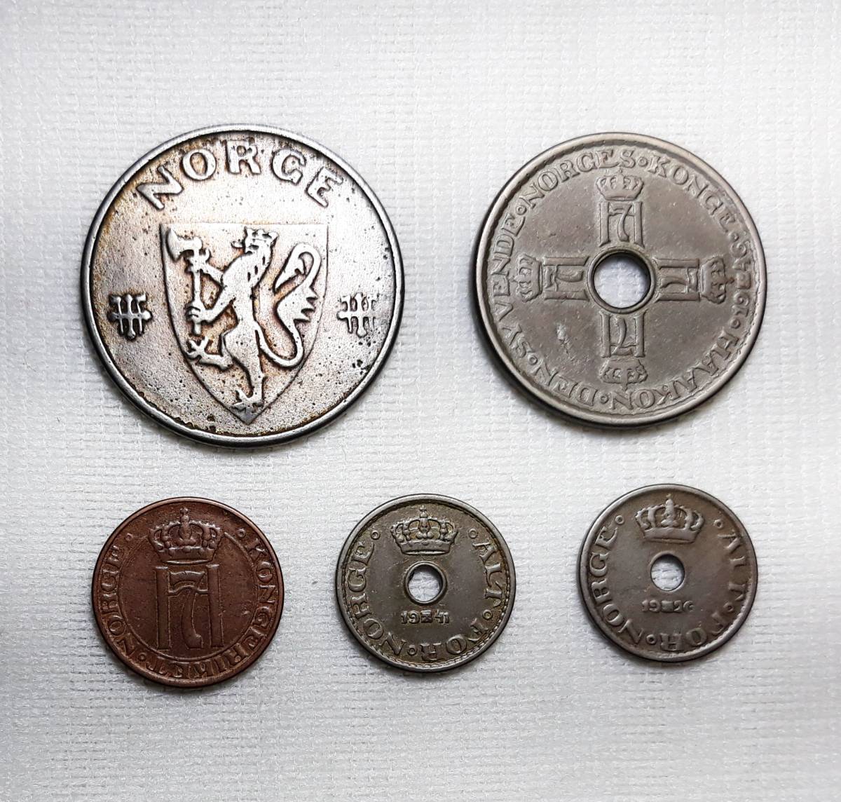 - 1926年~ ノルウェー 古い硬貨 5枚 ◆a-19