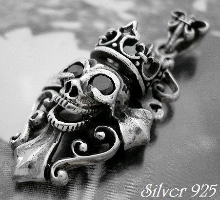 - シルバー925銀のキング オブ スカル ドクロ ペンダント/オニキス眼