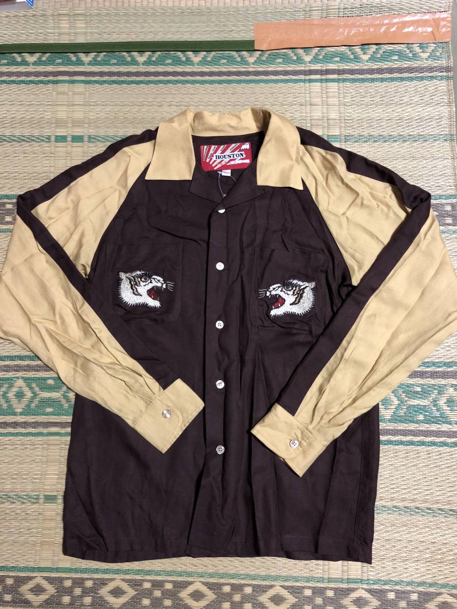 > HOUSTON スカシャツ 初期 M 新品未使用 トラ 虎 刺繍 希少 レア 廃盤 人気 長袖 アメカジ カジュアル ヒューストン ブラウン マスタード