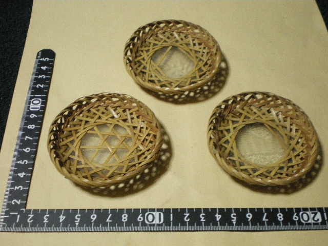 - 珍品フリマ・竹・籐] 竹+模様入り曇りガラス製 コースター 観賞用 3客 大きさは同じでも中央は三者三様 直径 8cm×厚さ1.8cm[送料無料]