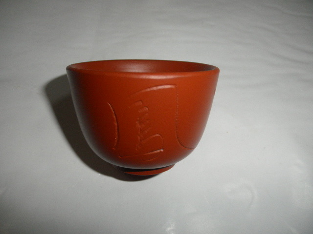 - @@@ 煎茶 煎茶湯呑 1個 朱泥 翔 鳳 茶道具 茶陶 古民具