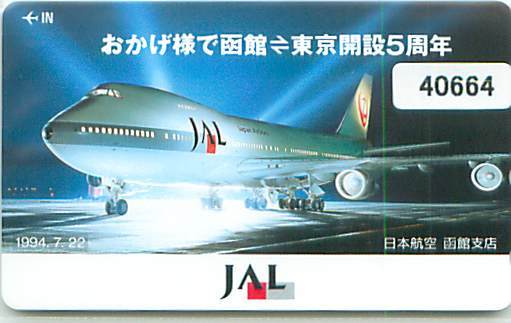 - 40664★函館=東京開設5周年 日本航空函館支店 JAL ジャンボジェット テレカ★