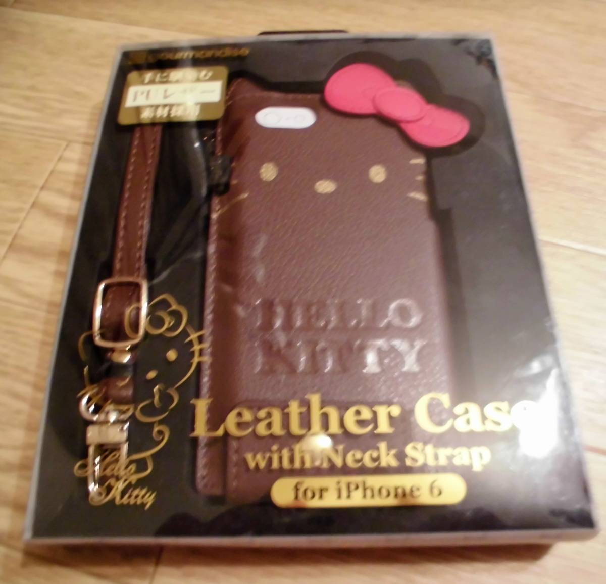 > 即決☆新品☆激カワ♪ハローキティ のシルエットレザーケース iPhone6 ストラップ付 茶色♪ブラウン♪