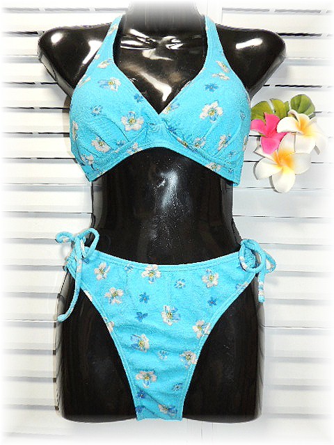 - ネックホルダー セパレート水着 9号/M ライトブルー×花柄