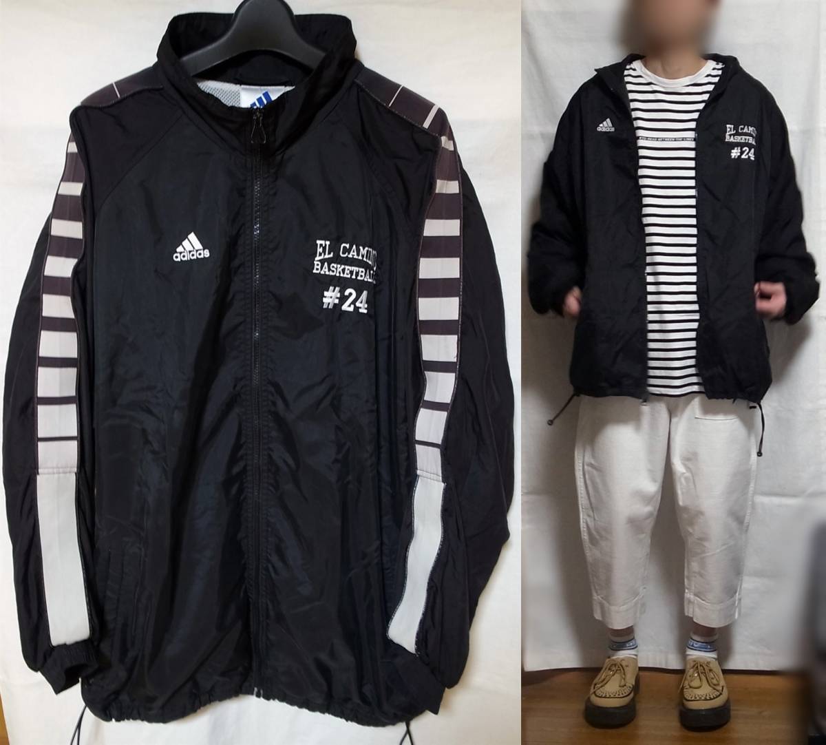 - 90's アディダス ヴィンテージ リフレクターラインジャケット ナイロンジャケット ウィンドブレーカー XL 黒 90年代 adidas vintage