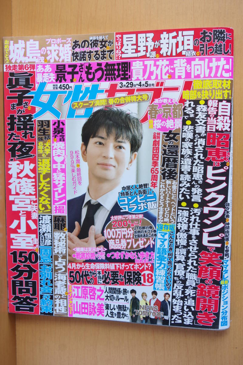 > 女性セブン 松本潤/NEWS/山田詠美/Hey! Say! JUMP/東山紀之 2018年3/29・4/5号