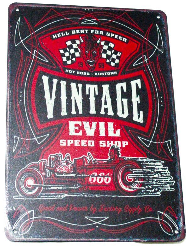 - アメリカンカースピードショップ/EVIL/金属板広告プレート/ヴィンテージ看板のレプリカ