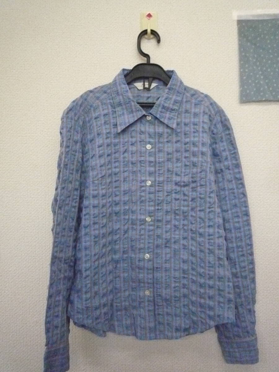 - ★Princees&Rose レディースチェック柄 長袖シャツ シワ加工 ブルー系9R