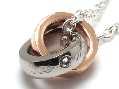 - ★人気★手入れ不要★変色無し★金属アレルギー&温泉&海水浴ご使用OK★ステンレスペンダント★2連リング&ピンクゴールド&ジルコニア