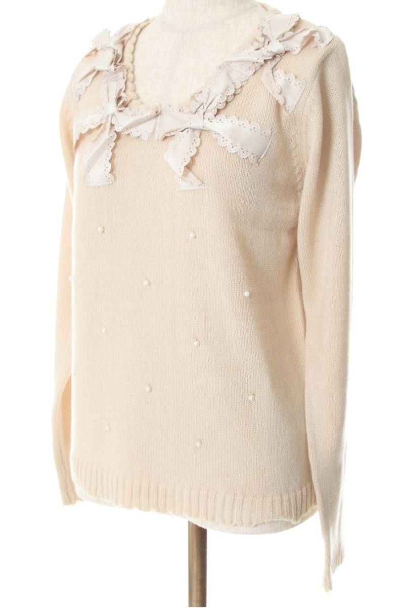 - 335◇リボンデザインニットプルオーバー ベージュ axes femme アクシーズ ファム MR131X54 フェミニン