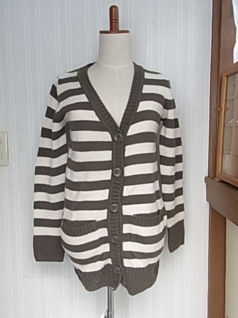 > ジャイロホワイト JAYRO white カーキグリーンとホワイトのボーダー 長袖カーデガン カーディガン レディース サイズ2