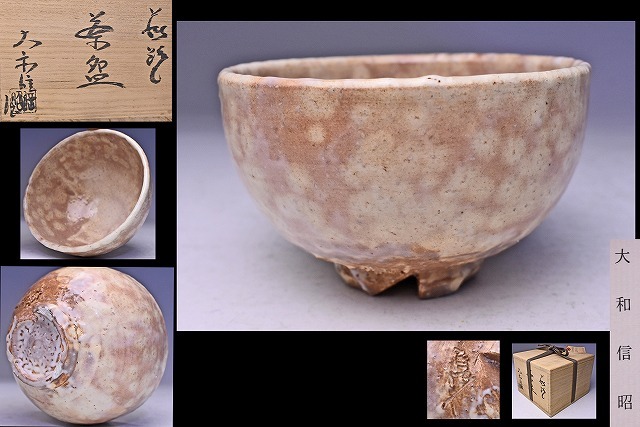 > 大和信昭 ★ 萩御本手茶碗 ★ 共箱栞 ★ 御本の景色が素晴らしい逸品 ★ 茶道具 ★ 検 大和春信 松緑 ★