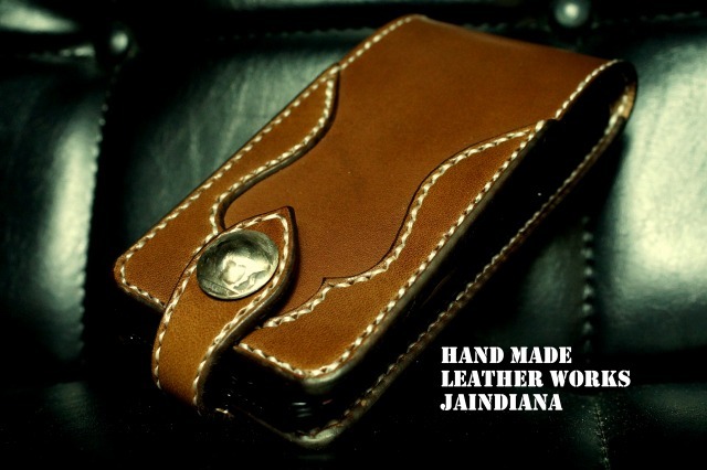 - ハンドメイド サドルレザーiPhone ケース ブラウン