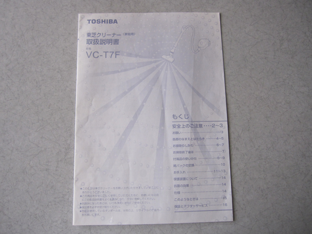 - 【 取扱説明書のみ 】 生産終了品 東芝クリーナー 掃除機 VC-T7F
