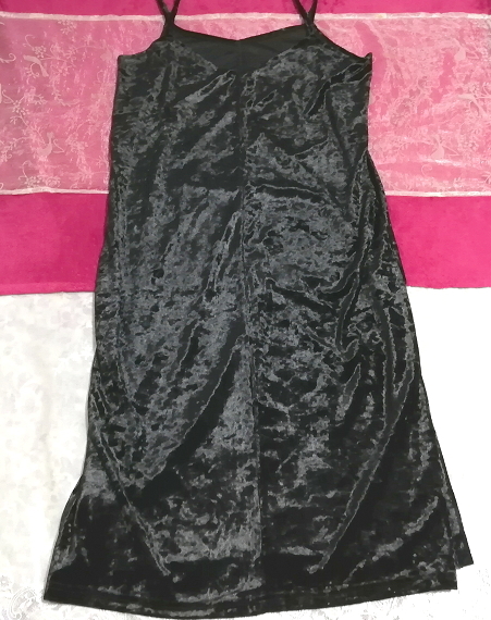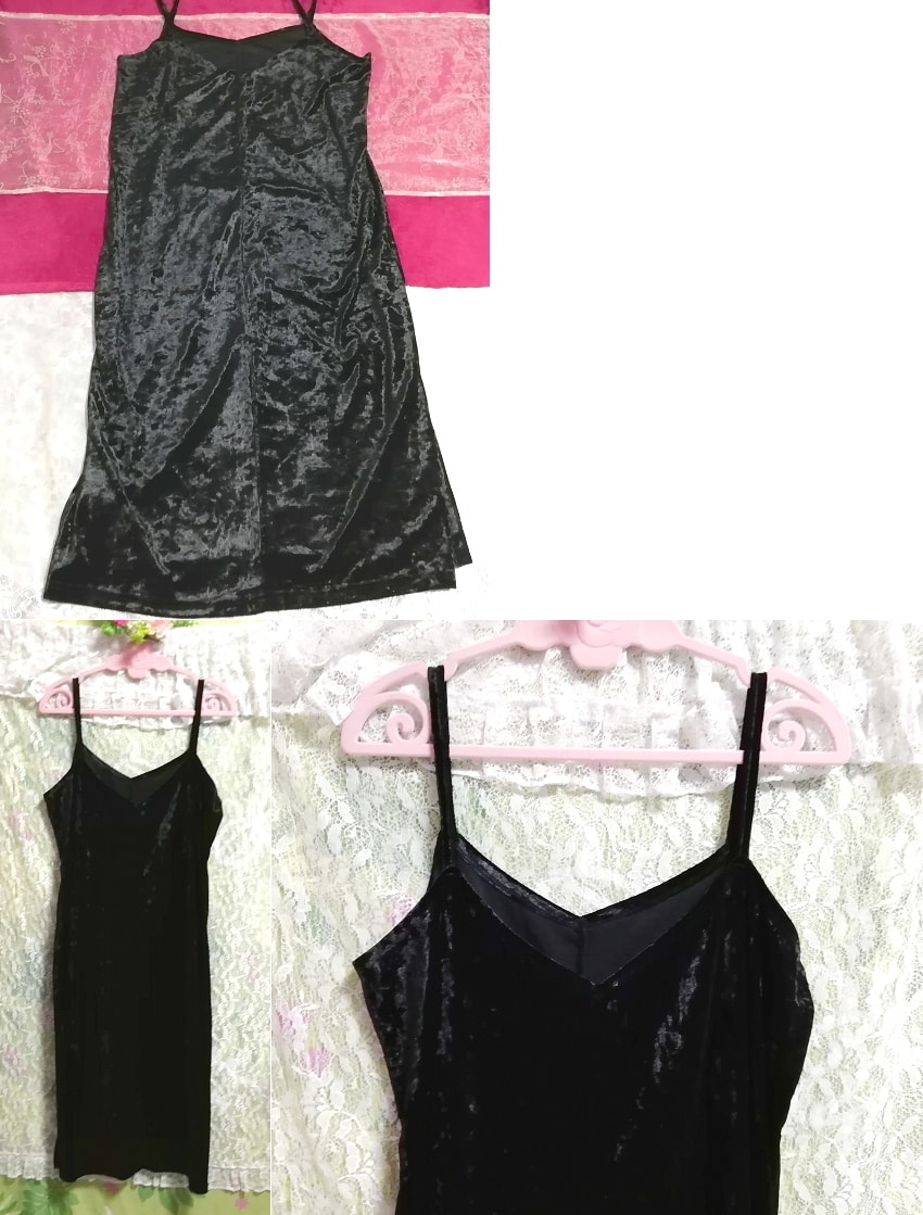 - 黒ブラックベロアネグリジェキャミソールワンピース Black velour long negligee camisole dress